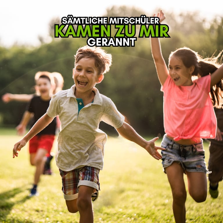 Da ertönte der Gong zum Ende der Schulstunde und die zwei Klassenbesten, die mich schon des öfteren überrundet haben, holten mich erneut ein und blieben mit mir in einer Linie. Ich hörte meine Mitschüler an der Ziellinie jubeln. Frau H. schrie „Jungs ihr sollt aufhören zu laufen, der Unterricht ist vorbei!“.